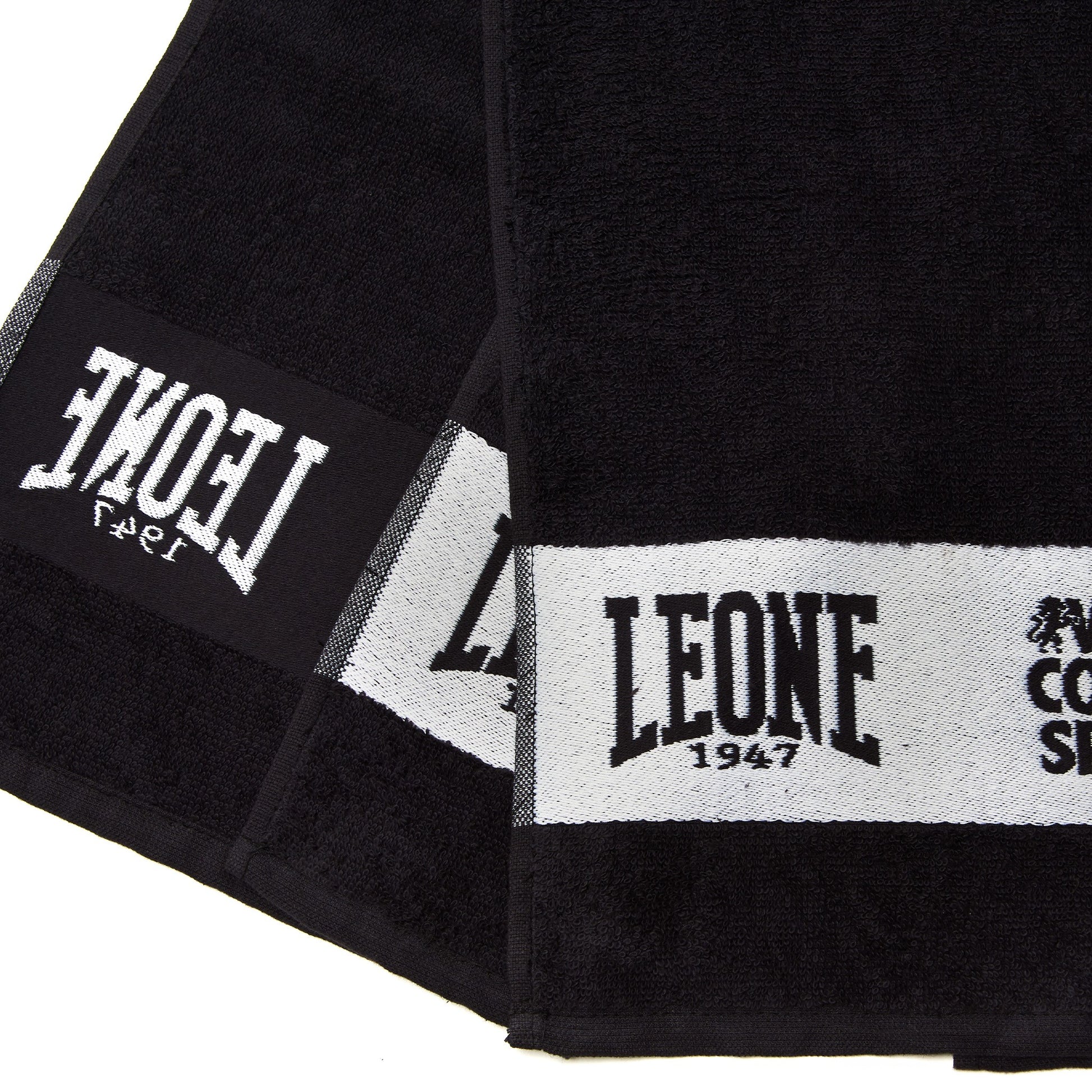 ASCIUGAMANO in spugna adatto come telo panca durante gli allenamenti in sala pesi o come asciugamano da ring, marchiato Leone 1947. Porta lo stile con te durante le sessioni di allenamento e le gare ufficiali di Boxe, Kick Boxing, Muay Thai, MMA. Realizzato in spugna, colore nero con bordi bianchi, in vero stile Leone 1947. Dimensioni cm 100x40.