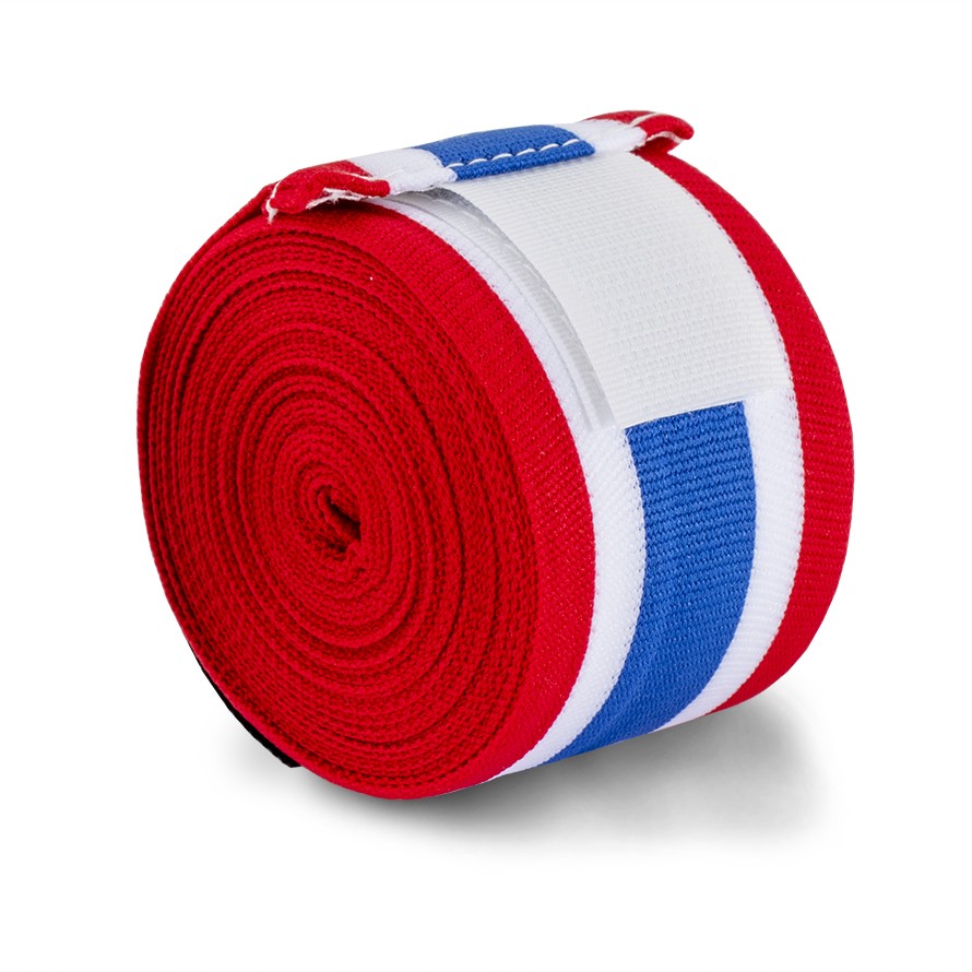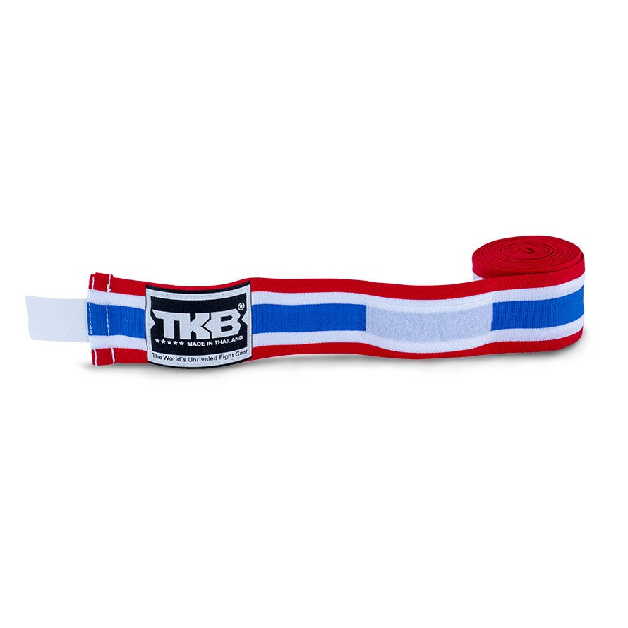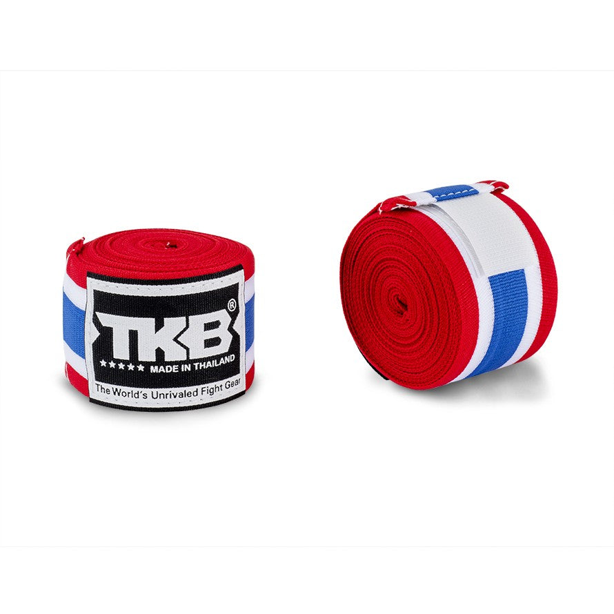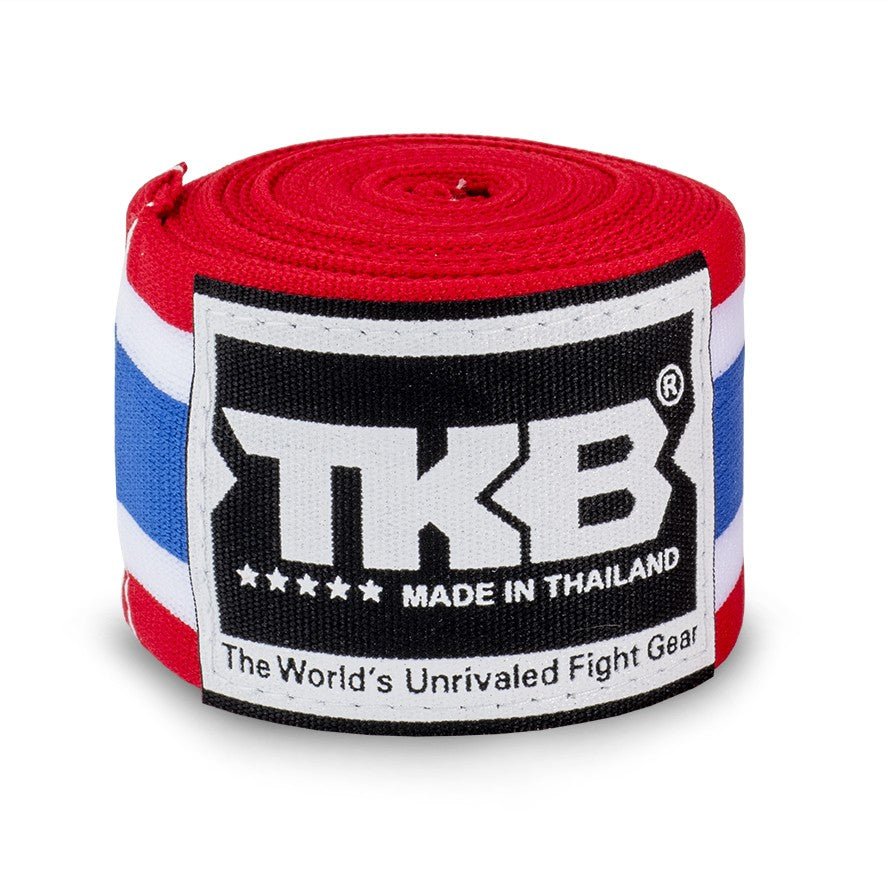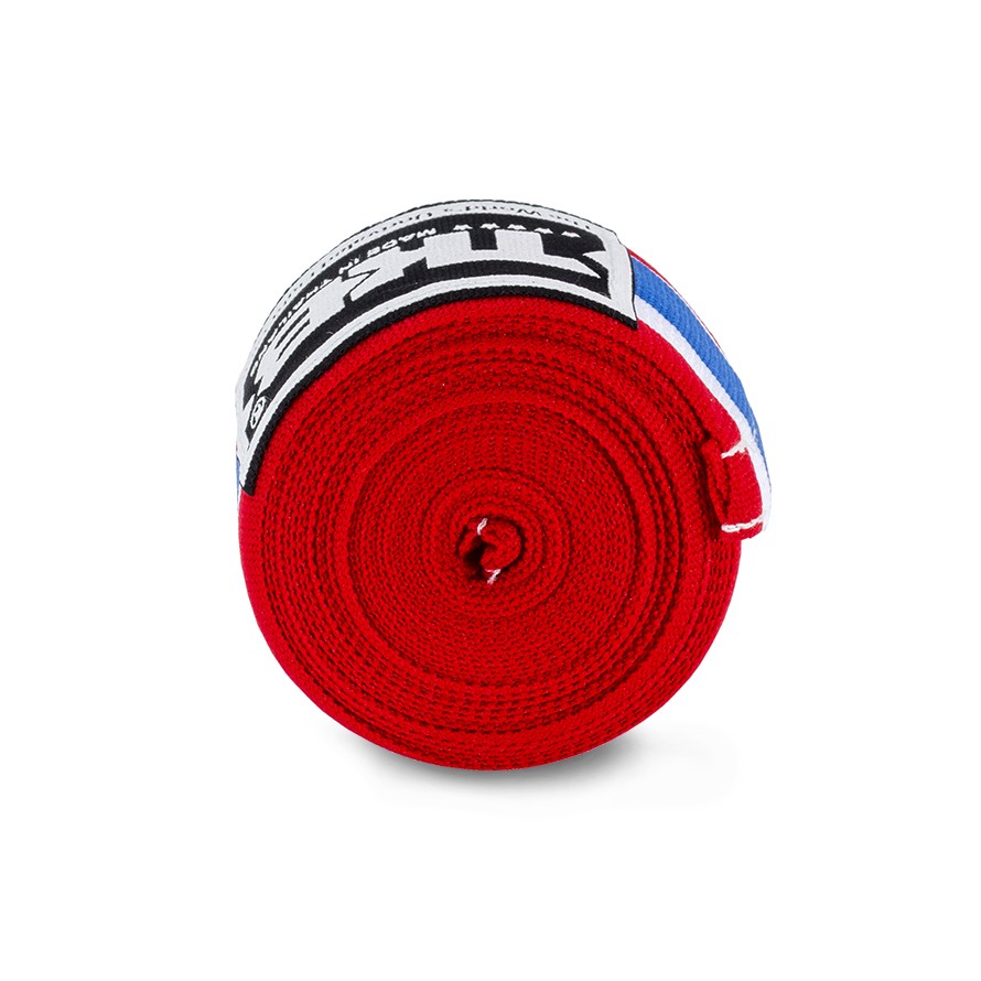 I BENDAGGI TOP KING, in cotone semi elastico, sono fasce mani studiate per proteggere il polso e le articolazioni della mano in tutte le discipline di Kick Boxing, Muay Thai e Boxe sotto ai guantoni. L'anello per il pollice e la comoda chiusura in velcro garantiscono la massima vestibilità e protezione, anche per le nocche. Da utilizzare in palestra e in gara (obbligatorio), la lunghezza dei bendaggi di 4,5 metri permette di avvolgere polso, mano e nocche al meglio. Le fasce, inoltre, limitano il sudore sotto i guantoni e mantengono le mani ben salde. Facilmente lavabili in lavatrice. Disponibile coi colori della bandiera thailandese, rendono omaggio alla Thailandia, patria della Muay Thai.