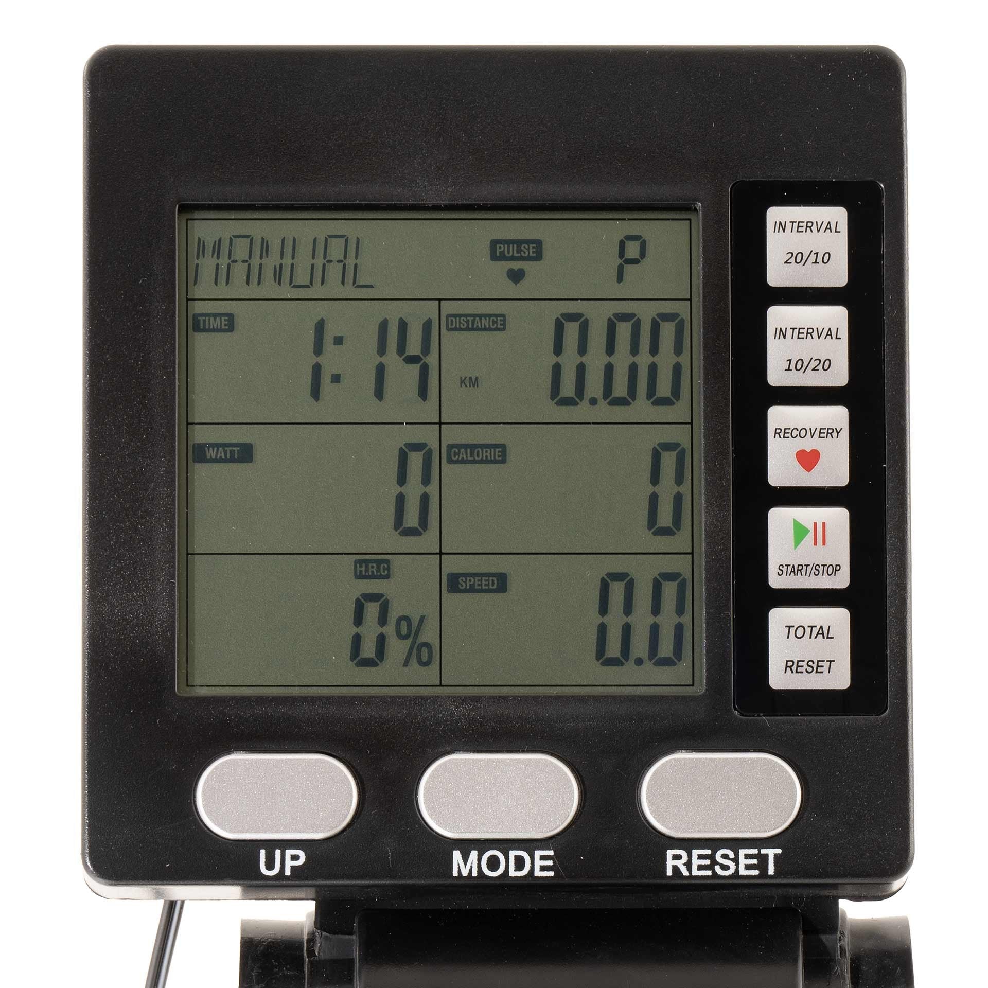 - Visualizzazione Tempo / Distanza / Calorie / SPM / Trazioni / Watt / Trazioni totali / Frequenza cardiaca