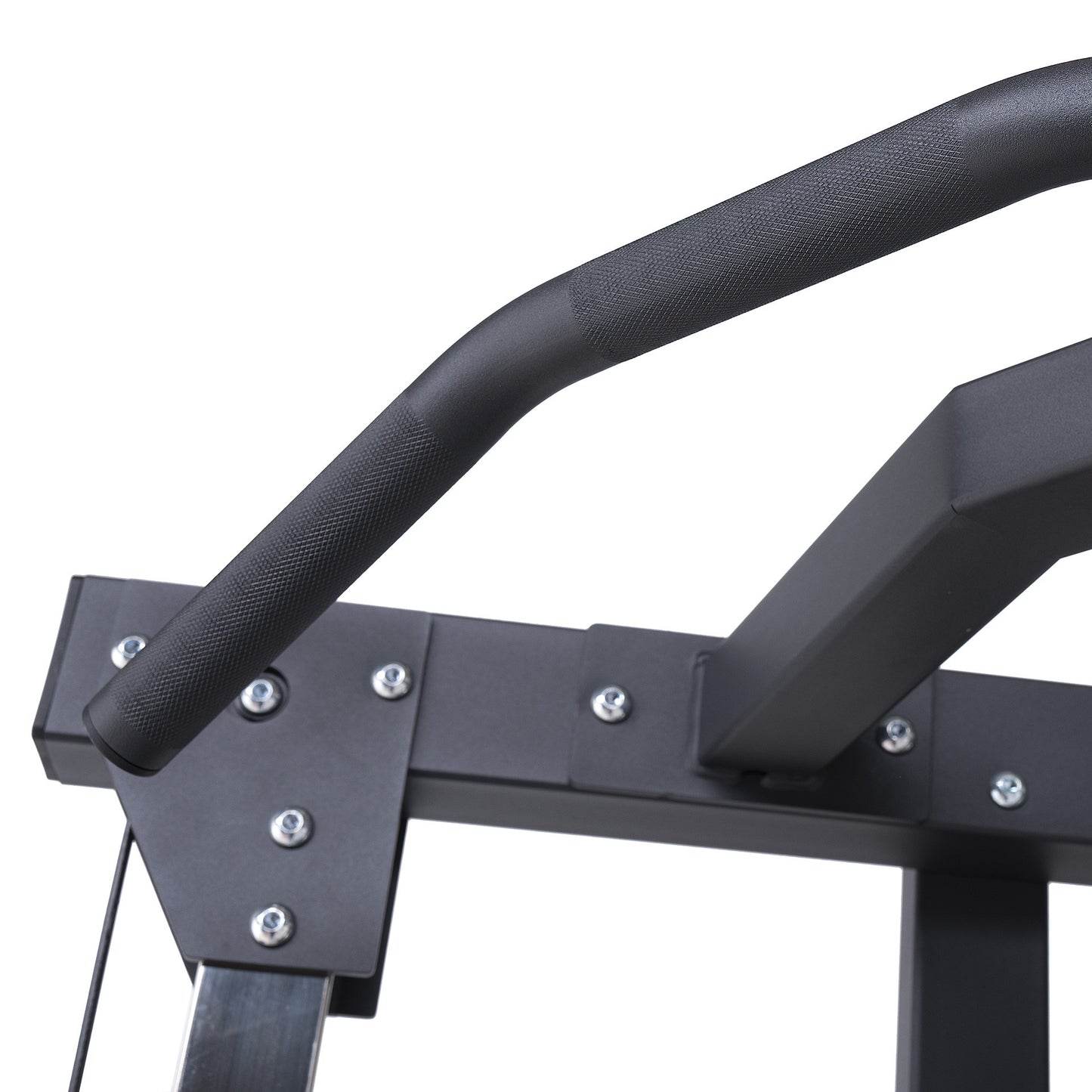Design Ergonomico: Pensato per offrire il massimo comfort durante l'uso, questo rack dispone di impugnature ergonomiche e un sistema di regolazione intuitivo, facilitando l'adattamento alle diverse esigenze di allenamento.