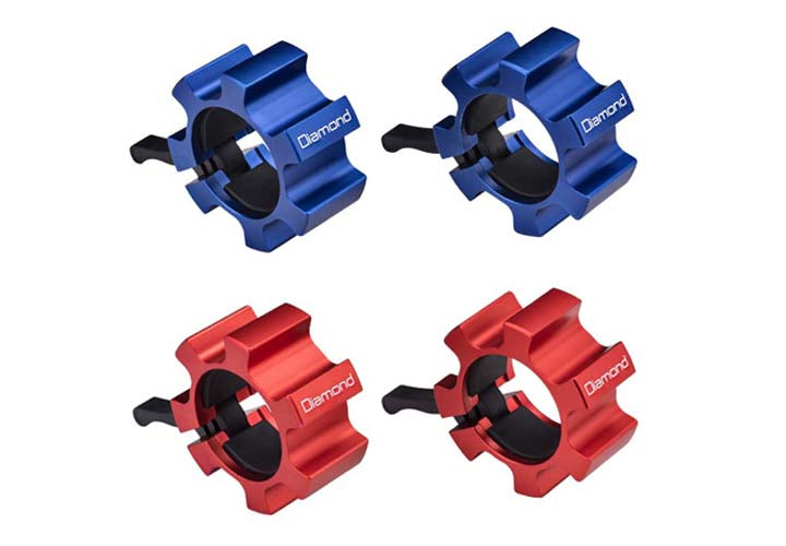 Coppia di ferma pesi a collare Ø50 mm per bilanciere Olimpionico. Materiale in lega di alluminio di alta qualità. Sgancio rapido, facile da mettere e togliere.