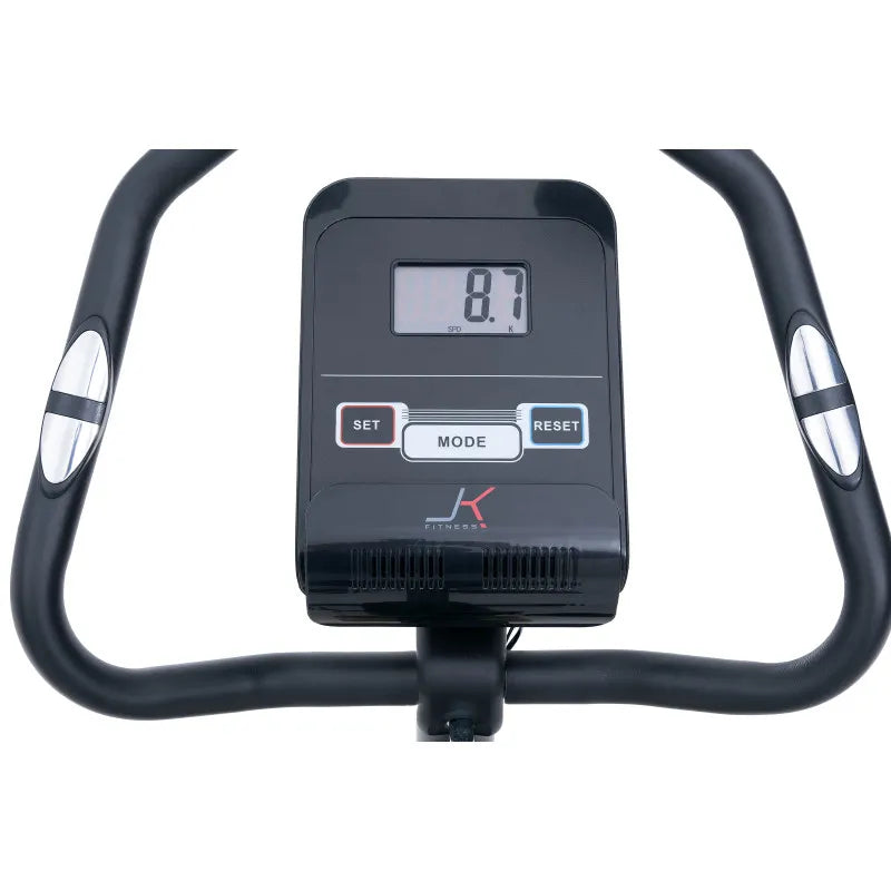 La cyclette JK Fitness 244 è equipaggiata con un volano di 9 kg, che assicura una pedalata fluida, stabile e senza interruzioni. Il sistema di resistenza magnetica è controllato manualmente con 8 livelli, permettendo un'ampia gamma di possibilità per allenamenti personalizzati, dai più leggeri ai più impegnativi. La sella è completamente regolabile in altezza e profondità per garantire una postura ergonomica, mentre il manubrio può essere inclinato per offrire il massimo comfort durante l'esercizio.