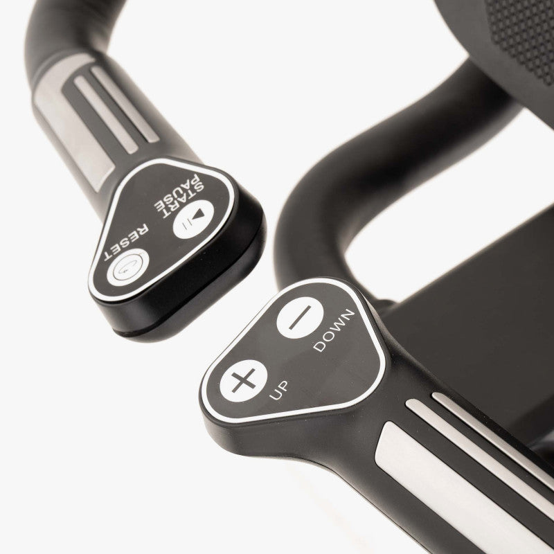 La cyclette è dotata di due sensori grip pulse sul manubrio e del sensore integrato per la ricezione dalla fascia cardio per rilevare la frequenza cardiaca dell’utilizzatore durante le sessioni di allenamento più intense. La fascia cardio toracica wireless di serie.