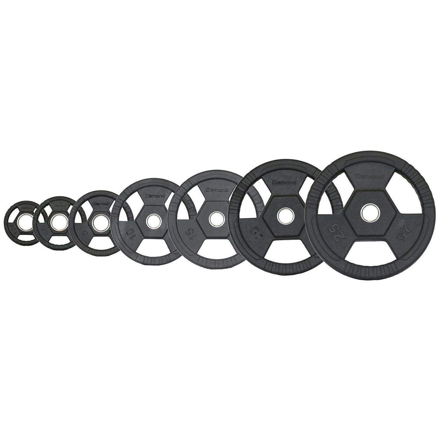 I dischi in ghisa olimpionici gommati Tri-grip Diamond Professional sono progettati per massimizzare l'efficacia del tuo allenamento. Sia che tu sia un principiante o un atleta esperto, questi dischi ti offrono la versatilità necessaria per migliorare la tua forza e resistenza. Sono la scelta perfetta per la tua palestra personale o il tuo centro fitness.
