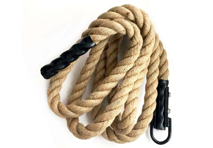 Fune da arrampicata in canapa intrecciata con diametro 38 mm. La fune è munita di anello di aggancio ed impugnature rivestite in gomma termoretraibile. L’arrampicata è uno degli esercizi più utilizzati nel Crosstraining, che permette di allenare forza e resistenza allo stesso tempo. Dimensioni: Ø 38 mm x 6 m