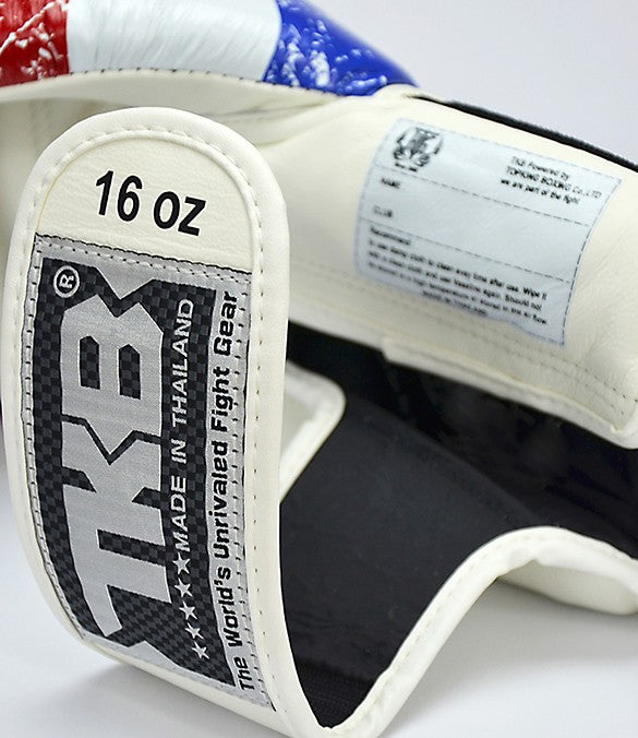 TOP KING. I GUANTONI FLAG EDITION riprendono i colori della bandiera thailandese e rendono omaggio alla Thailandia, patria della Muay Thai. Si distinguono per essere realizzati in pelle bovina di altissima qualità e imbottitura interna in schiuma ad alta densità che offre un’eccellente protezione di mano e polso durante l’allenamento. Sistema di chiusura a strappo avvolgente, progettato per una vestibilità sicura e facile da indossare e da togliere. Made in Thailandia. L'ideale per tutte le discipline: dalla Kick Boxing, alla Muay Thai, alla Boxe.
