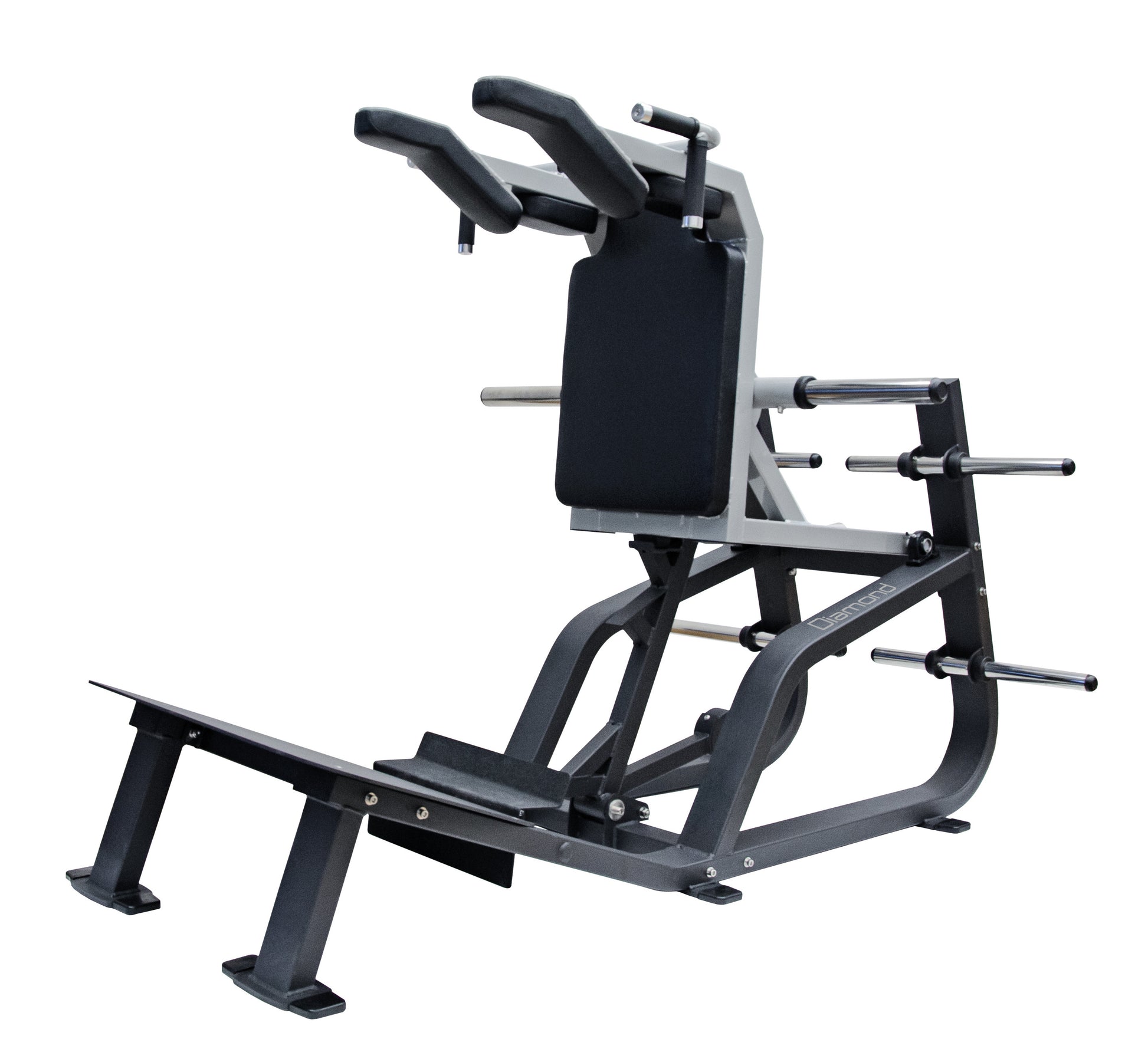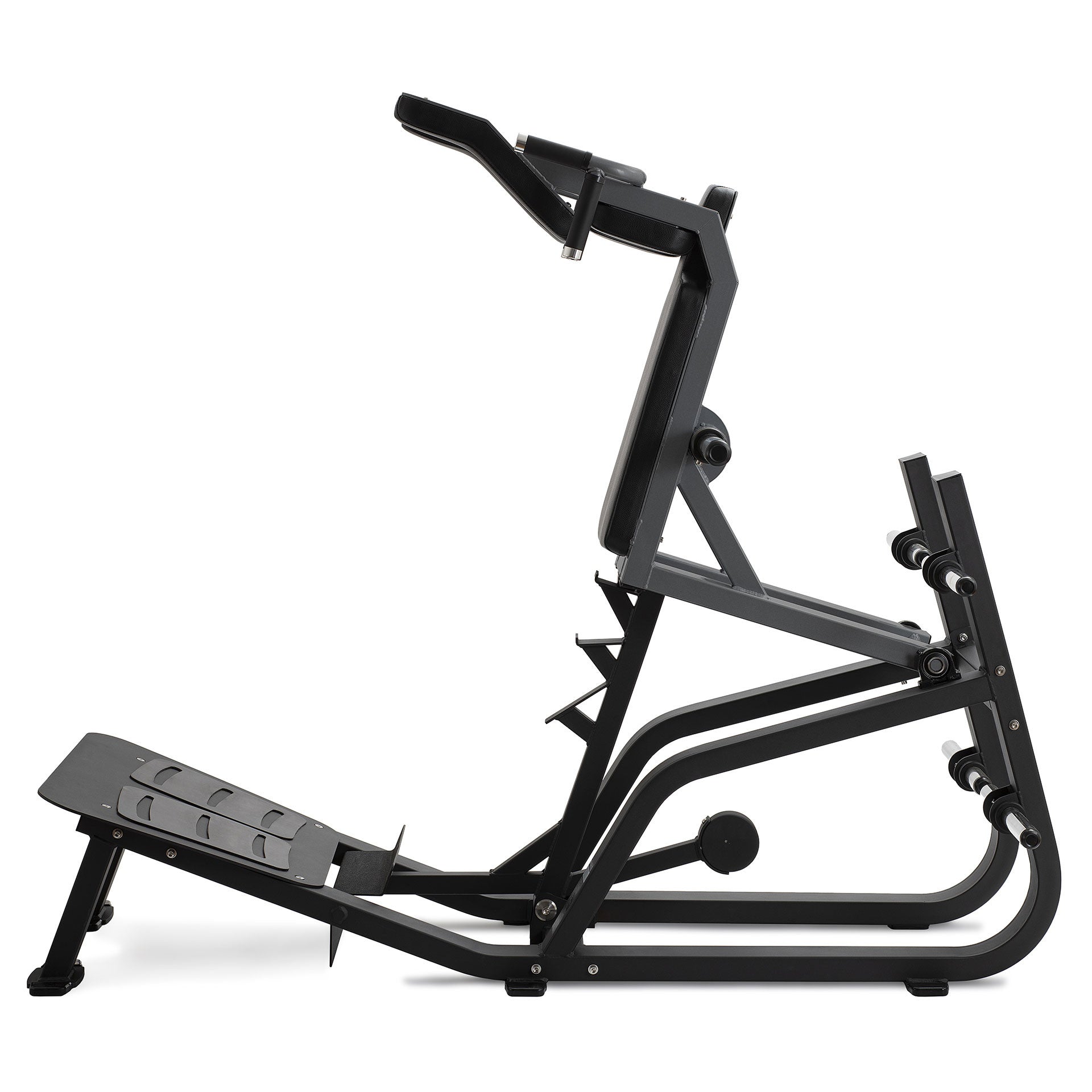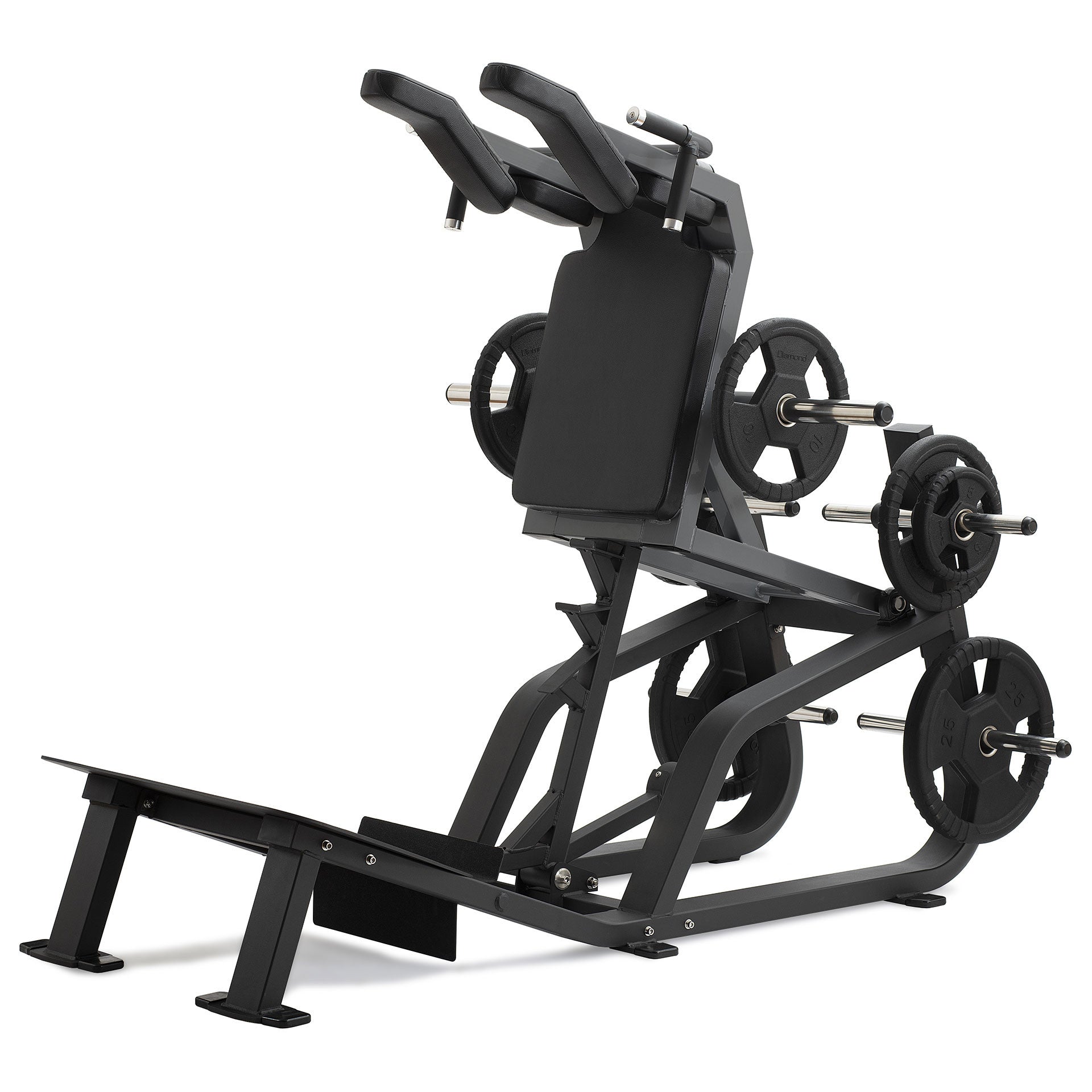 L??Hack Squat Çù una macchina per esercizi che viene utilizzata per l??allenamento della forza della parte inferiore del corpo, ed Çù progettata per replicare un movimento accovacciato e naturale. Grazie all??arco di movimento curvo, l??Hack Squat riduce il carico assiale e di conseguenza lo stress sul ginocchio e sulla schiena.