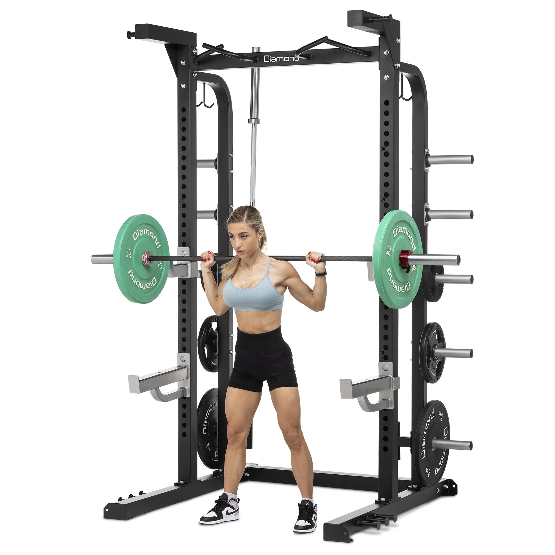 Il Half Rack PRO Diamond Professional Çù estremamente versatile, permettendo una vasta gamma di esercizi. Ç? perfetto per squat, bench press, deadlift e molti altri esercizi di forza. Inoltre, Çù dotato di una barra per pull-up integrata, che consente di aggiungere esercizi di trazione alla tua routine di allenamento. Questo rende il rack una scelta eccellente per chi cerca un'attrezzatura completa per il proprio allenamento.