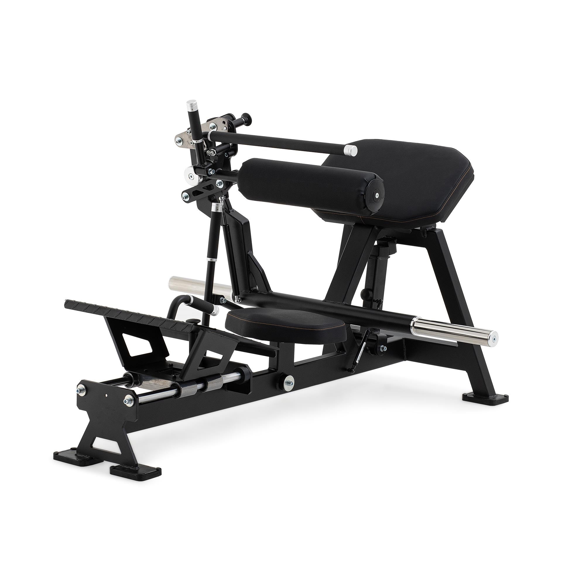 della Serie 500 è un prodotto specifico per l’allenamento dei muscoli posteriori della coscia con un lavoro mirato sui glutei. Rullo di spinta regolabile su più altezze così da adattarsi a tutti gli utenti, che inoltre non va ad ostacolare l’ingresso alla macchina grazie alla leva di assistenza che permetto lo sgancio/aggancio del rullo. Lo schienale basculante segue il movimento durante l’esercizio. Seduta di riposo/sicurezza posta a fine ROM. La pedana antiscivolo regolabile si muove su una doppia rotaia di guida costruita in acciaio legato che permette, insieme alla struttura portante lineare, una regolazione sicura e rapida ed una resistenza nel tempo. Imbottitura in schiuma ad alta densità, tappezzeria in pelle PU “per arredamenti”. 2 perni portadischi per uno stoccaggio facile ed immediato.