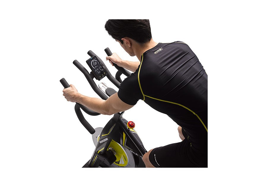 La cyclette ha una sella confortevole e ergonomica regolabile orizzontalmente e verticalmente micrometricamente. La rilevazione del battito cardiaco avviene grazie ad appositi sensori situati nel manubrio, oppure tramite il ricevitore wireless integrato per fascia cardio (Optional). Il manubrio è ergonomico e regolabile verticalmente e orizzontalmente. Dotato di un pratico portaborraccia, inoltre offre l'esclusivo sistema d'illuminazione Glow Ride che conduce i ciclisti verso tre diverse fasi di guida per simulare il ciclismo su strada, i pedali sono bifacciali con fermapiede. Grazie alle ruote si può spostare facilmente da una stanza ad un’altra.