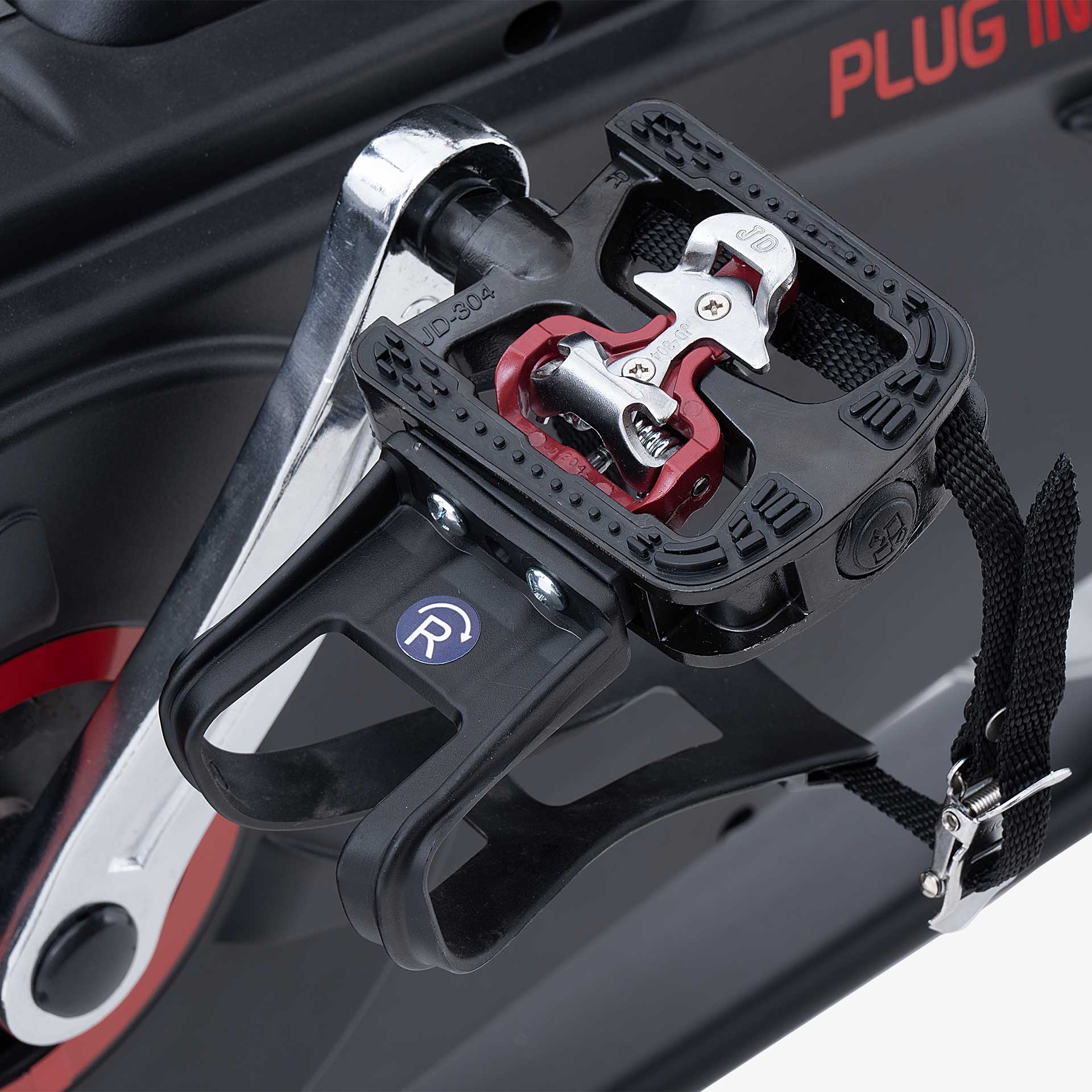 La nuova JK 564 è una spin bike elettro-magnetica di fascia medio-alta nel mondo home fitness a scatto fisso con trasmissione a cinghia silenziata, equipaggiata con un sistema inerziale importante con una massa volanica di 22 kg (volano bilanciato), un freno magnetico a regolazione elettronica che genera una potenza massima di 480W (195W a 60 RPM) e una pedivella da 17 cm cromata. Il gruppo freno della JK 564 viene gestito elettronicamente da un servo motore comandato da pulsanti sulla console. La pedalata della nuova spin bike JK 564 è fluida e costante anche alle alte resistenze, offrendo bellissime sensazioni all’utilizzatore che sale a bordo. Per un ottimo comfort l’indoor bike JK 564 ha la regolazione in altezza della sella su 12 posizioni (misura della gamba da 73,5 cm a 99,5 cm) e in profondità 7,5 cm, il manubrio multi-presa rivestito in dipping con prese basse crono, si regola in altezza su 8 posizioni e in profondità 8 cm. Queste ampie regolazioni permettono di trovare sempre la migliore posizione in sella ad ogni utilizzatore, anche a persone molto alte! La sella racing design, anatomica, con foro centrale, aiuta e migliora la sensazione a bordo garantendo confortevoli e lunghe pedalate senza particolari fastidi. Il pedale racing antiscivolo in alluminio con attacco rapido SPD e cinghietto ferma piede, aiuta a mantenere il corretto appoggio della scarpa in tutte le fasi della pedalata, anche in quelle più intense.