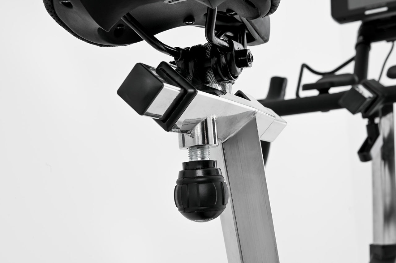 Manubrio Progettato per offrire tutte le prese tipiche del ciclismo: posizione su orizzontale, mani basse, leve e time trial. Per quest'ultima, sono previsti due supporti ruotabili per appoggiare gli avambracci. Questo permette una simulazione accurata della posizione da crono. I supporti possono essere ruotati in posizione di riposo, consentendo così una presa comoda senza interferenze con le mani nelle prese non TT (time trial). Il corpo manubrio comprende anche 2 porta borraccia laterali e facilmente raggiungibili durante l'esecuzione dell'allenamento. Regolazione verticale e orizzontale micrometrica