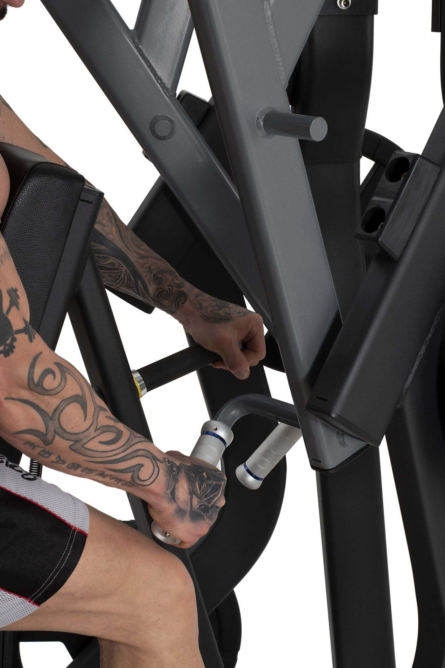 - Caratteristiche Il range di movimento è opposto alla pressione di declino iso-laterale consentendo un vero esercizio di spinta/trazione. Maniglia aggiuntiva centrale per consentire la stabilizzazione dell'utente durante gli esercizi con un braccio. Seduta comoda ed ergonomica regolabile verticalmente per adattarsi alle diverse dimensioni dell'utente. 6 perni portadischi per uno stoccaggio facile ed immediato.