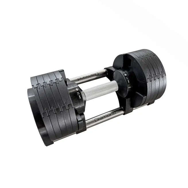 Manubrio a carico variabile con range peso da 2 a 20 kg; regolazione mediante la sola rotazione dell’impugnatura Ø 35 mm; step carichi disponibili 2 kg, 4 kg, 6 kg, 8 kg, 10 kg, 12 kg, 14 kg, 16 kg, 18 kg, 20 kg.