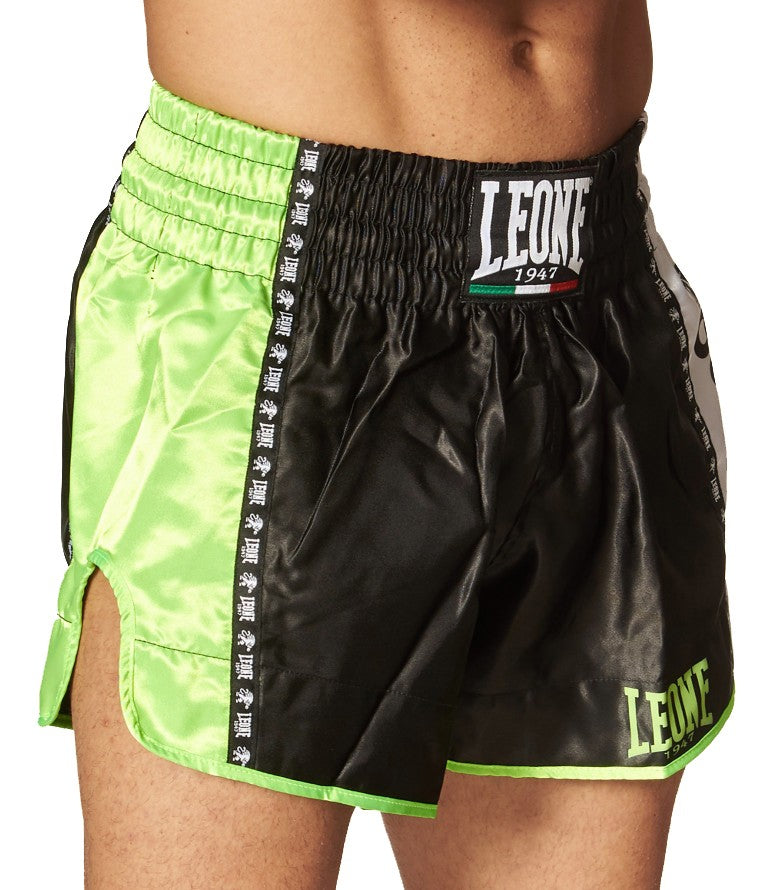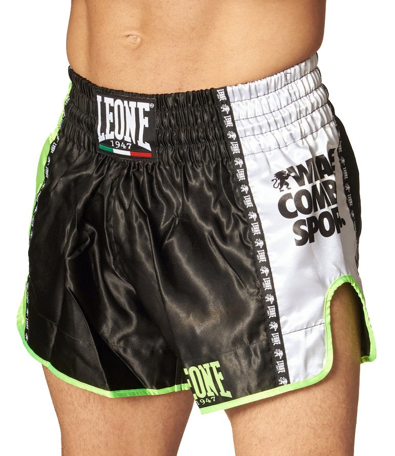 Pantaloncino Leone da Kick Boxing e Thai Boxing in satin con stampe in sublimazione. Confortevole e leggero per l’allenamento di dilettanti e professionisti; ideale per chiunque cominci ad allenarsi in uno sport a contatto. Il disegno del pantaloncino e gli spacchi laterali lo rendono particolarmente indicato per l’utilizzo di calci e ginocchiate.