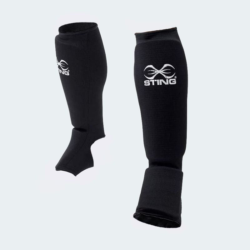PARATIBIA STING in cotone, perfetti per i tuoi allenamenti di Muay Thay, MMA, e sport da combattimento a contatto pieno. In cotone, con passante per il tallone, sono imbottiti frontalmente per proteggere le tibie durante gli sparring e le tecniche, per tirare calci e pararli in sicurezza. Disponibili in nero, taglie S, M, L, XL.