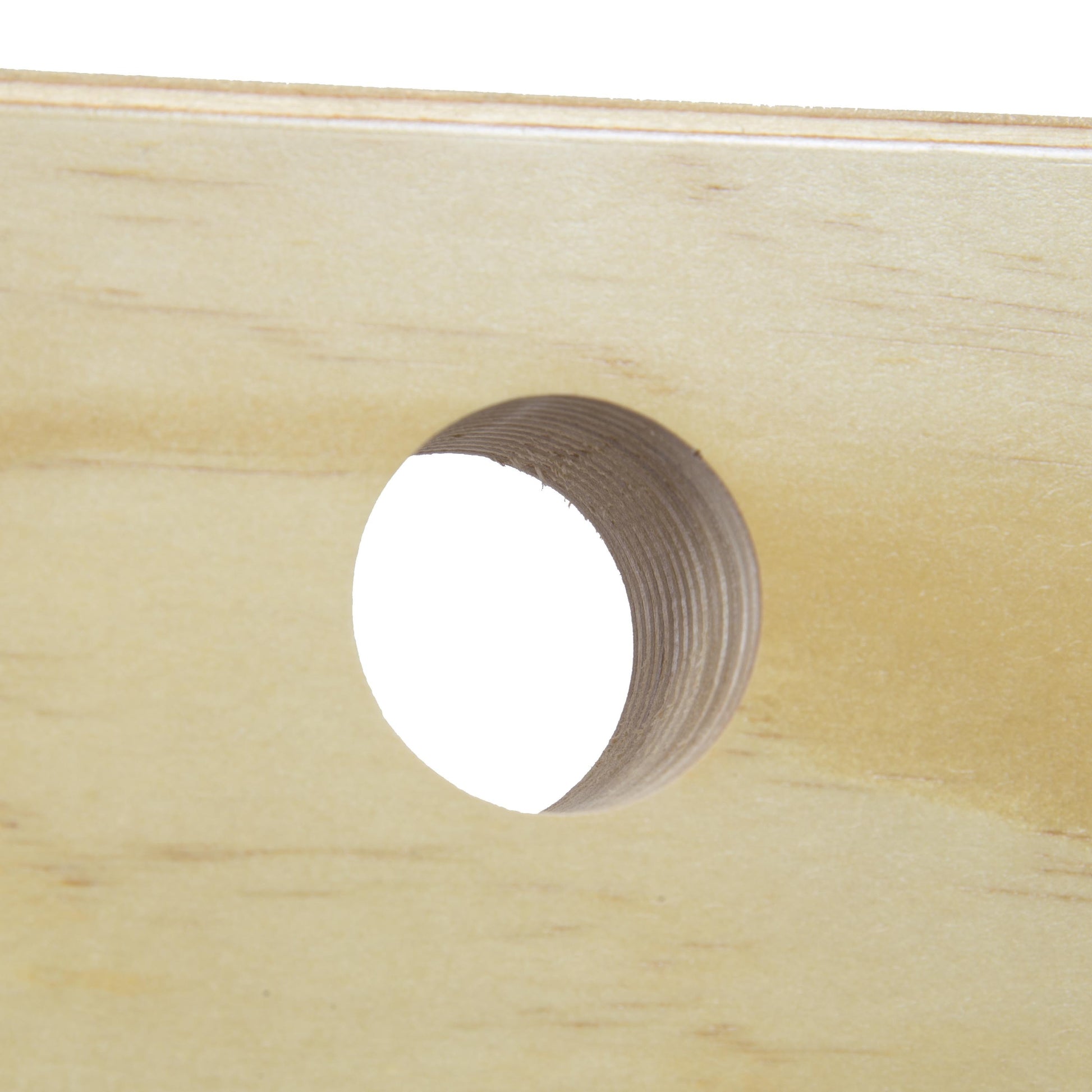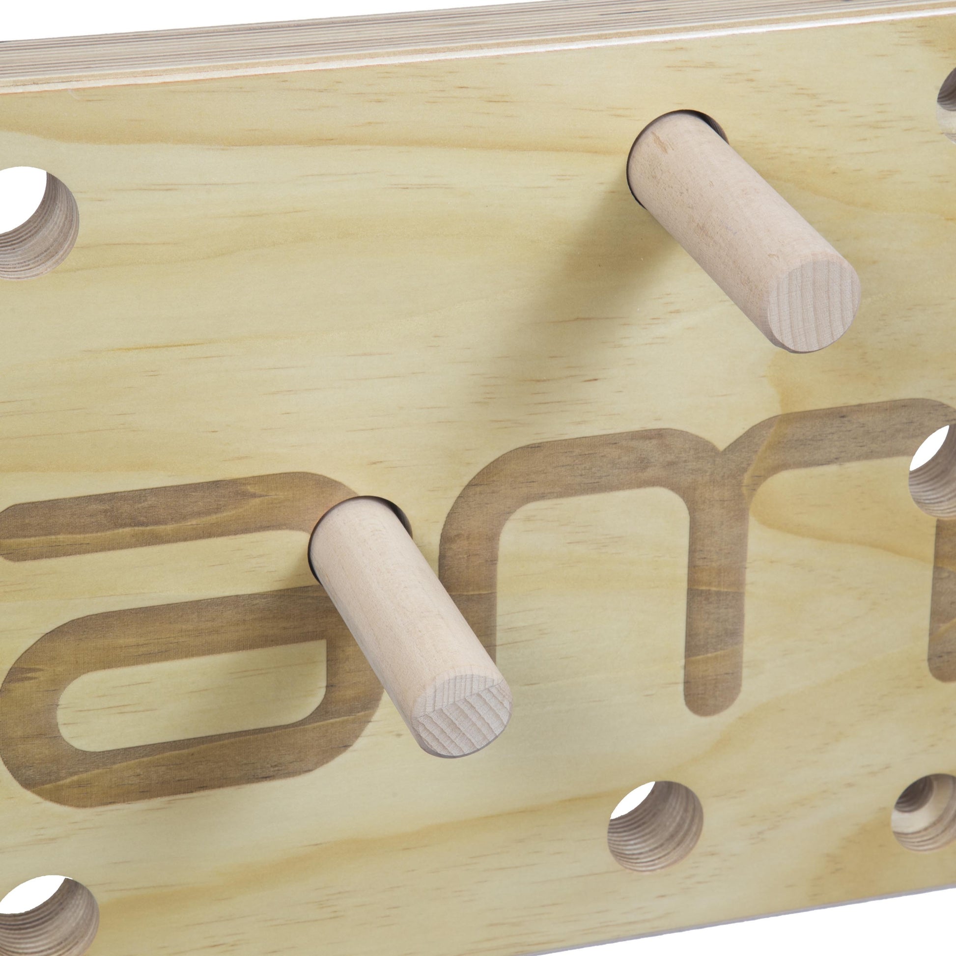 La Peg Board è realizzata con legno di pino nello strato superiore e con legno di pioppo in quello inferiore con spessore 42mm, la superficie è laccata per garantire una durata nel tempo e una qualità superiore.