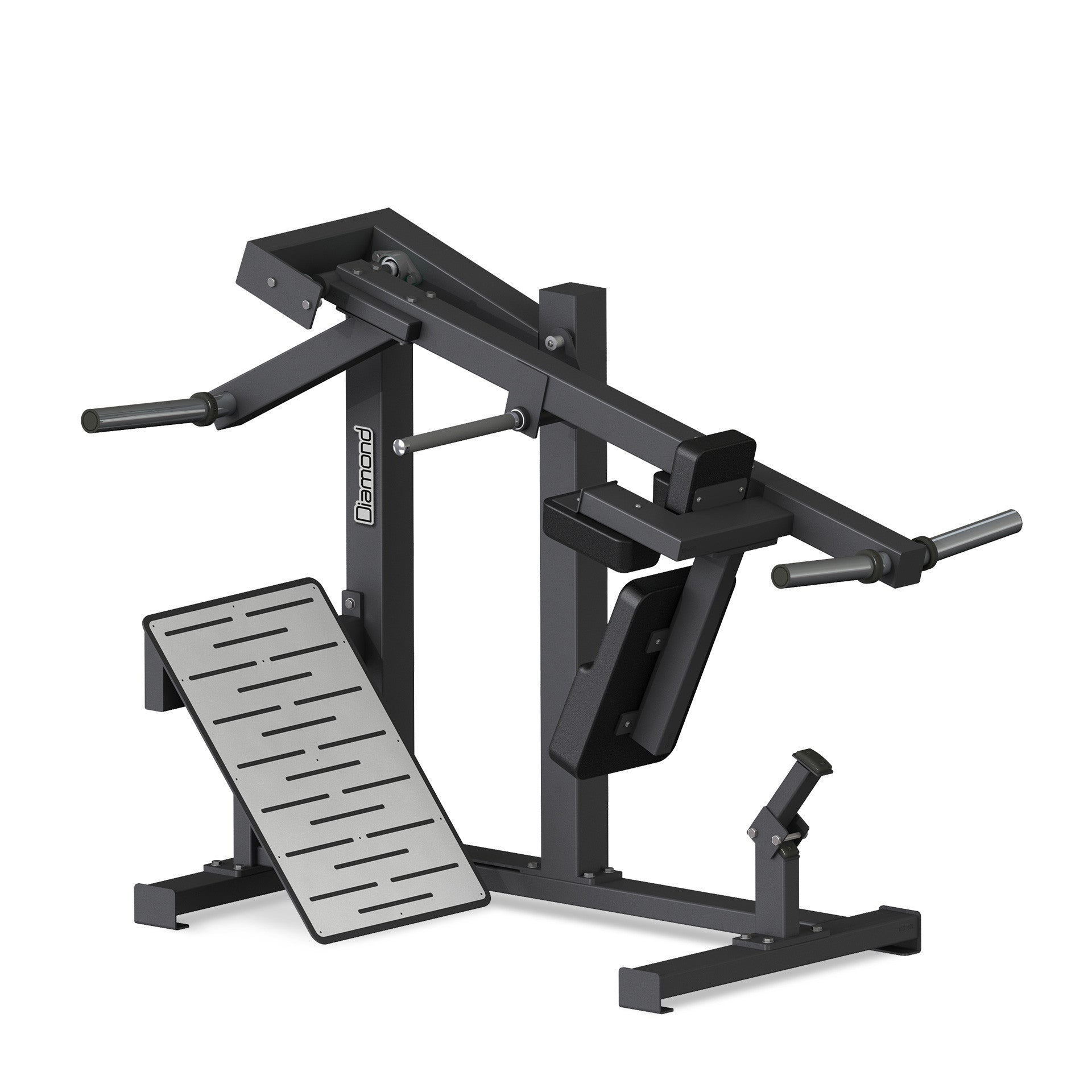 Realizzata con materiali di alta qualità, la Pendulum Squat Diamond Professional Serie 300 si distingue per la sua robustezza e durabilità. La struttura è in acciaio rinforzato, con un design ergonomico che assicura stabilità durante l'uso. Le imbottiture sono realizzate in materiale antistrappo, resistente e confortevole, garantendo il massimo supporto durante l'allenamento. Grazie alla leva pendolare, l'atleta può eseguire squat profondi con il massimo controllo.