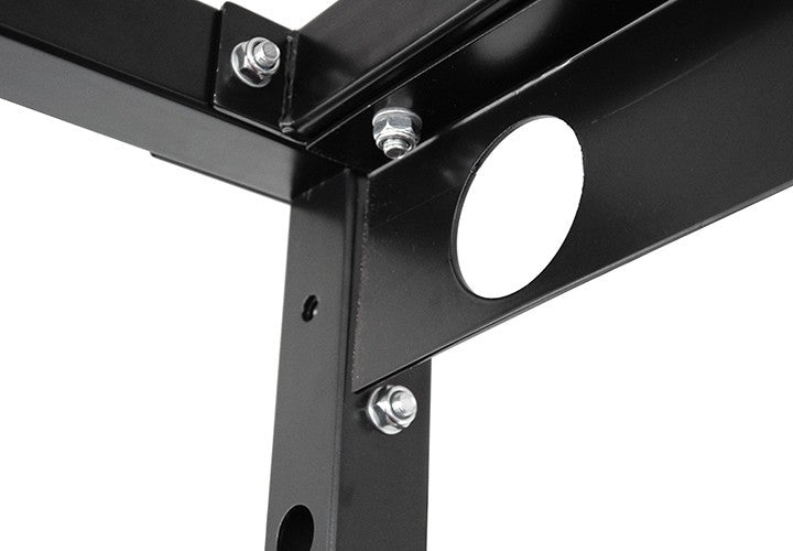 - Supporti regolabili: Il rack è dotato di supporti per bilanciere regolabili in altezza, permettendo di adattare facilmente l'attrezzo alle diverse esigenze di allenamento.