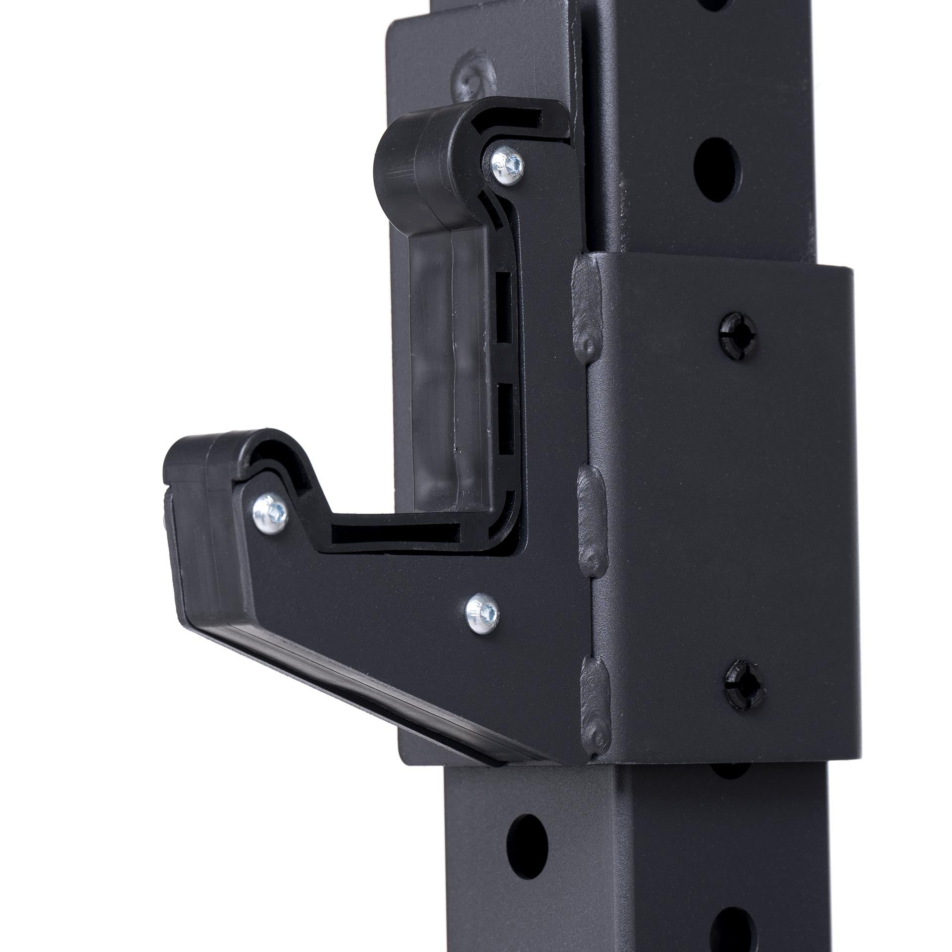 - Caratteristiche 45 fori per montante. 2 supporti bilancieri con protezione in ABS. 2 safety bar. 2 safety band. 2 porta bilancieri verticali. 1 barra per trazioni zigrinata.