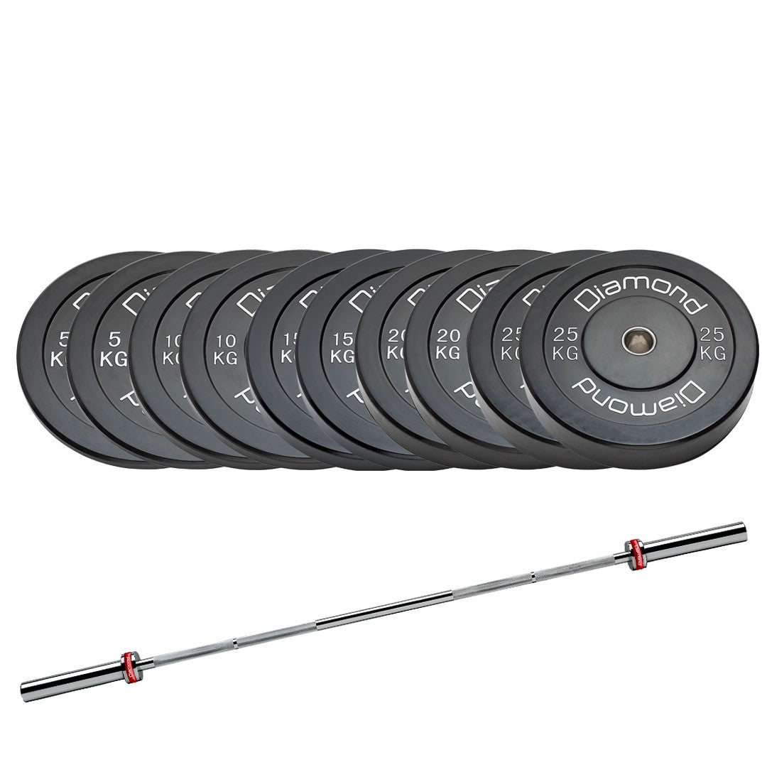 Set 150 kg Dischi bumper Diamond Professional foro 50 mm + bilanciere 220 cm olimpico