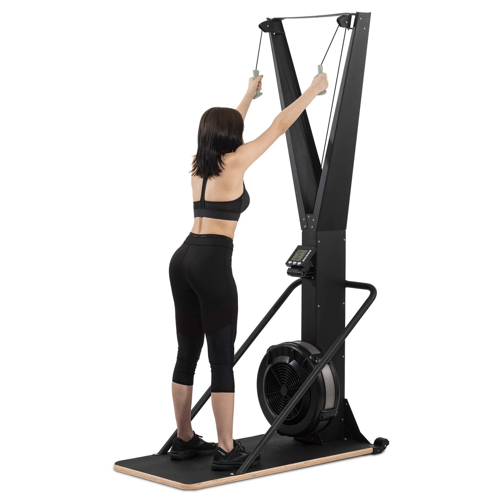 Le manopole ergonomiche replicano l’impugnatura delle racchette tipiche della specialità, il movimento degli arti superiori, debitamente accompagnato dalla flessione ritmica delle gambe, asseconda la progressione dell’utente dal warm-up al defaticamento post workout. Il tutto monitorato attraverso il display che registra i principali parametri di performance.