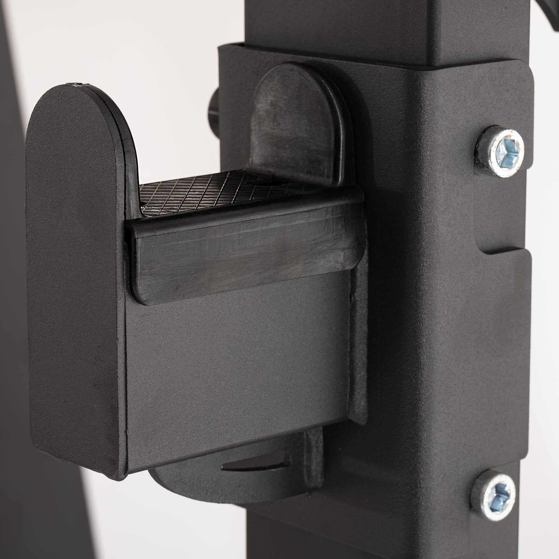 Sistema di Sicurezza Avanzato: Dotata di fermi di sicurezza regolabili, offre protezione durante l'allenamento, permettendo di sollevare pesi in autonomia senza rischi.