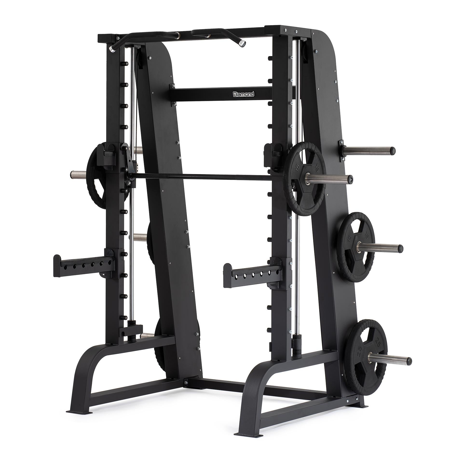 Smith Machine serie 300 Diamond professional, un macchinario composto da un bilanciere guidato collegato alle due estremità a due barre in acciaio che fungono da guida durante esercizi