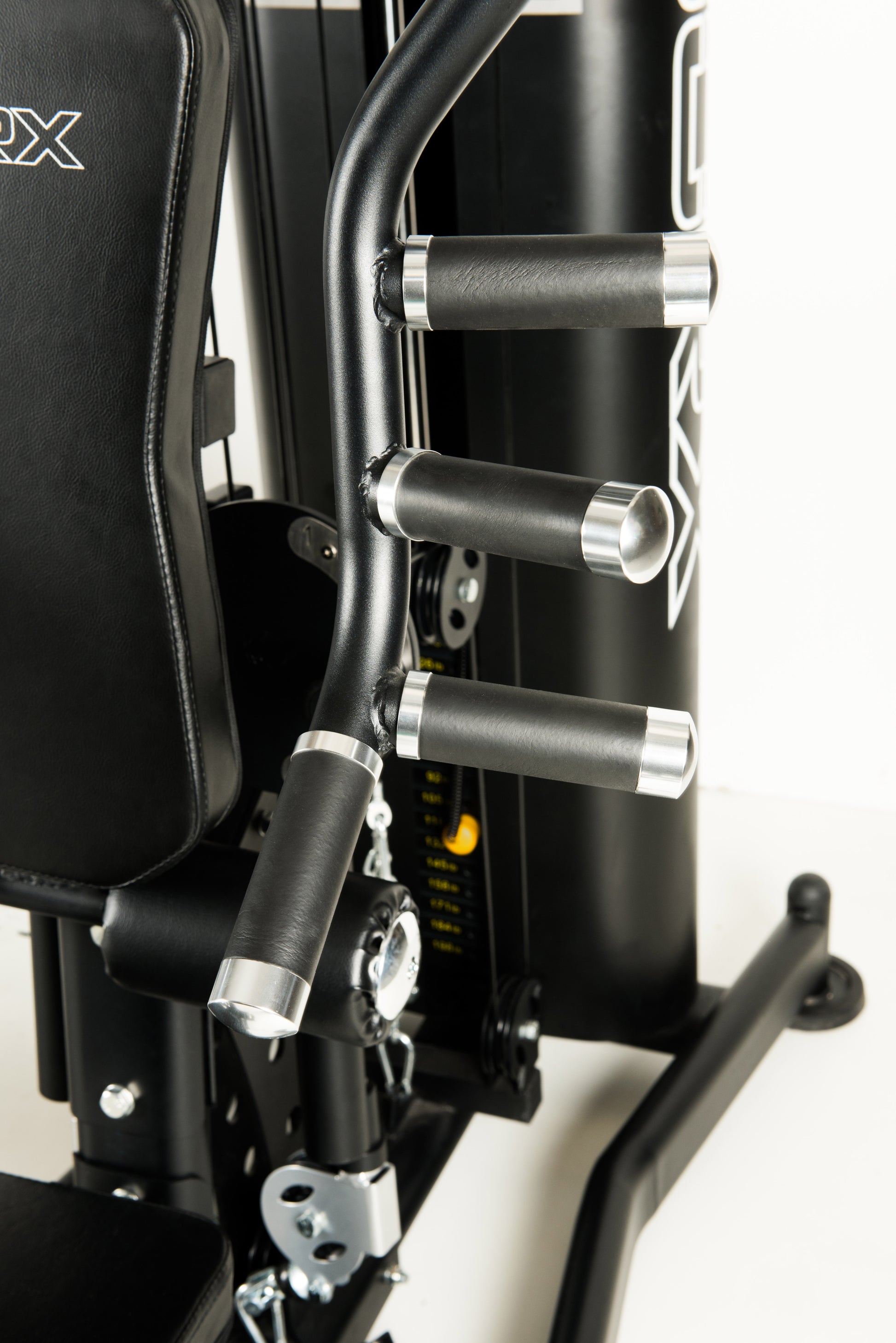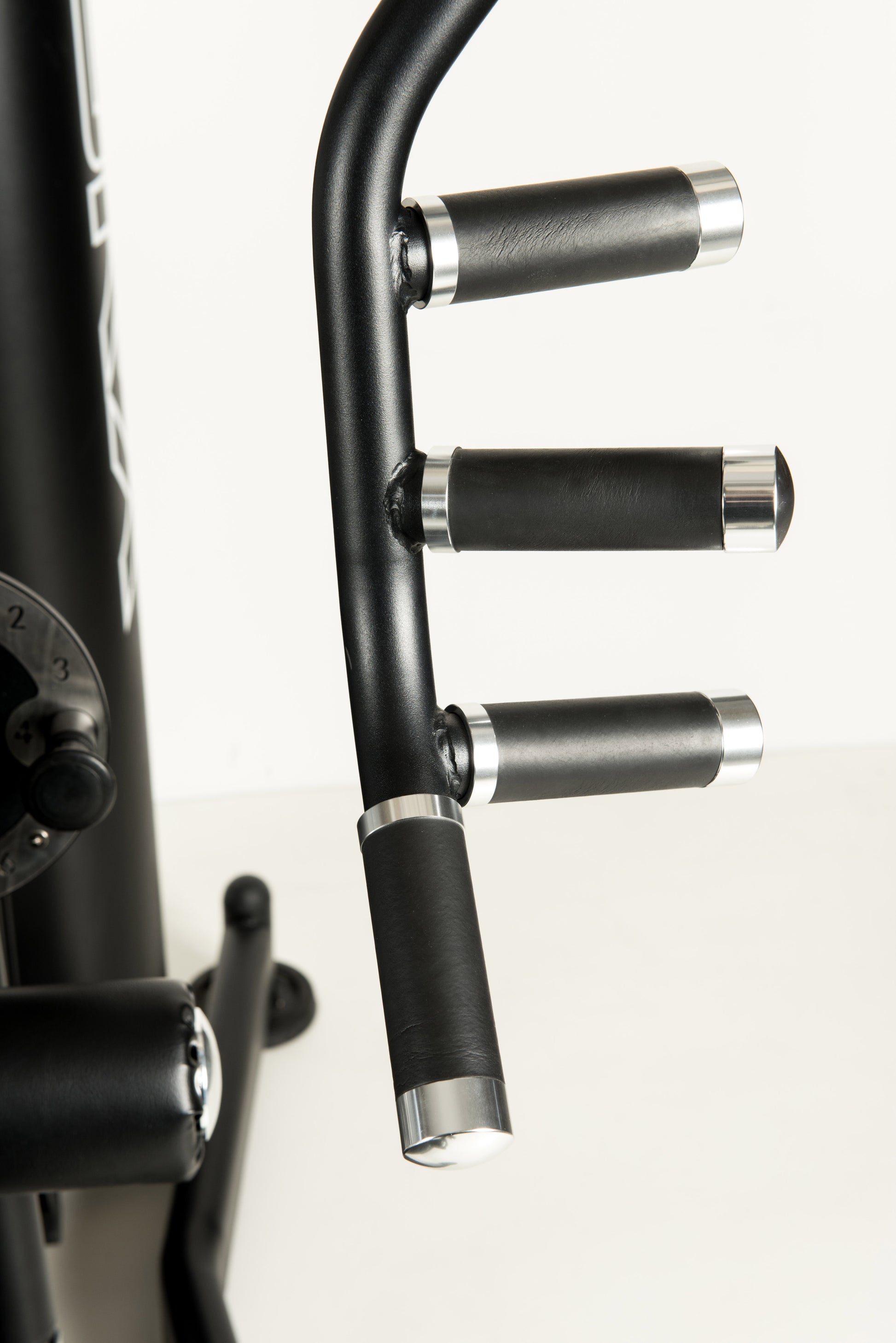- Funzioni: triceps, abdominal crunch, leg extension, high pull AB crunch, tricep push-down, lat pull down, biceps, pectoral fly, seated press bar row, seated pulley row, front press, leg kick back, seated shoulder press, upright row, standing leg curl, arm curl, lex press regolabile