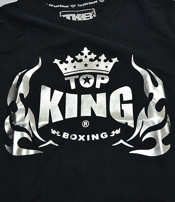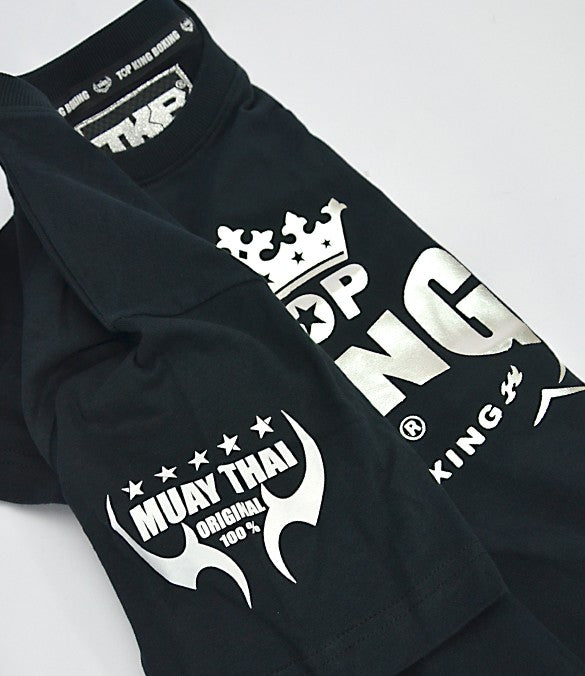 Perfetta per i tuoi allenamenti e per il tempo libero, la T-SHIRT TOP KING 017 nera, in cotone, presenta un’ampia stampa argentata sul petto che riporta il logo TOP KING BOXING, brand d’eccellenza made in Thailandia. Su una delle due maniche la stampa MUAY THAI ORIGINAL 100% esprime al meglio la tua passione per gli Sport da Combattimento. La vestibilità comoda la rende una t-shirt versatile e confortevole, da indossare sotto i pantaloncini da Muay Thai o per uscire con gli amici.