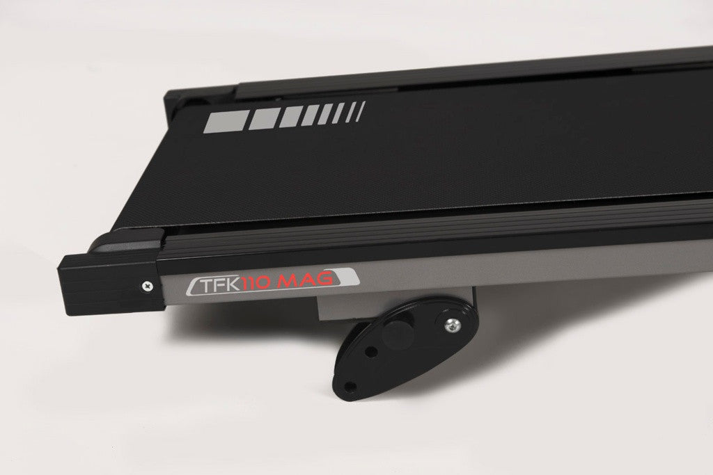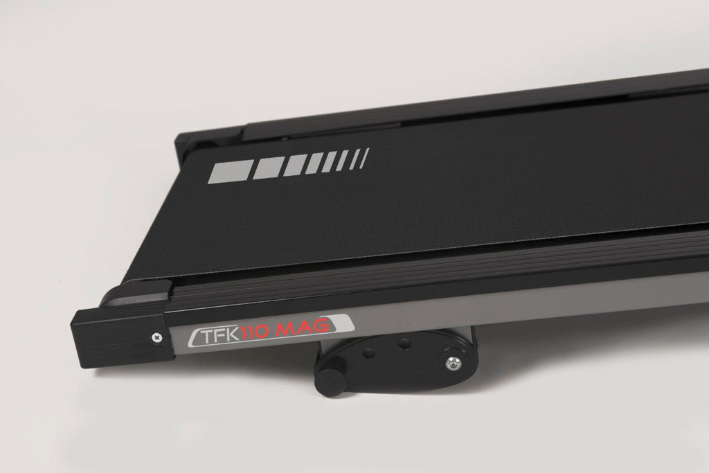 Il design compatto del TFK 110 MAG lo rende adatto a qualsiasi spazio domestico. Con una struttura pieghevole e ruote di trasporto integrate, è facile da spostare e riporre dopo l'uso. Nonostante le sue dimensioni contenute, il tapis roulant offre una superficie di corsa ampia e confortevole, permettendo un movimento naturale e sicuro.