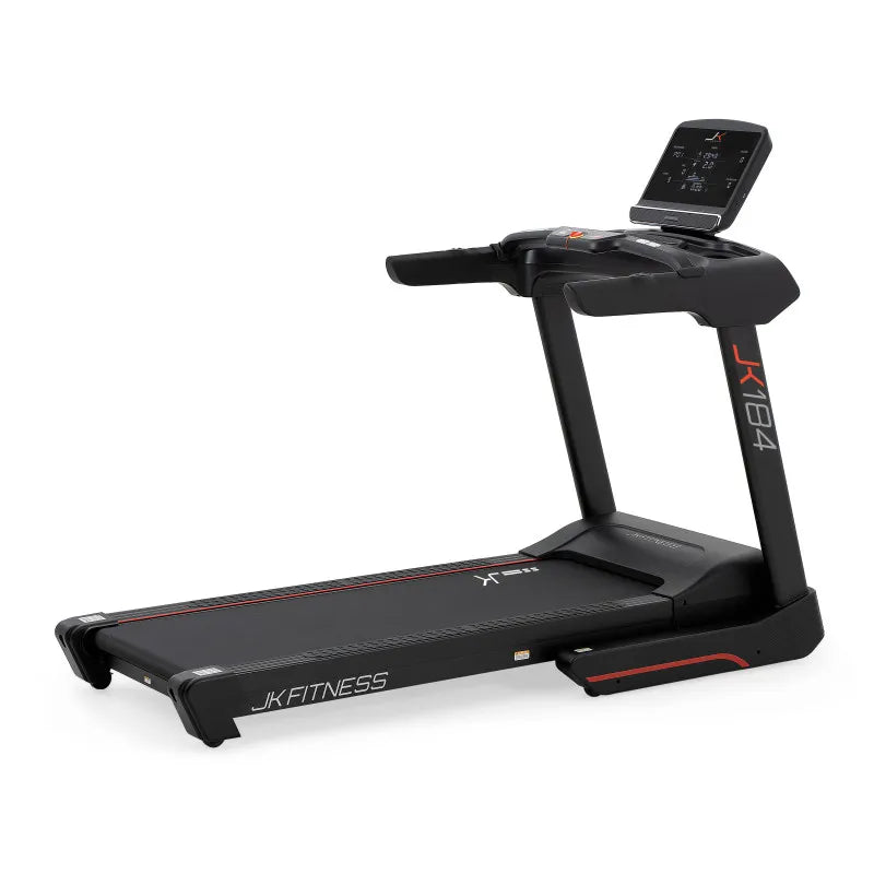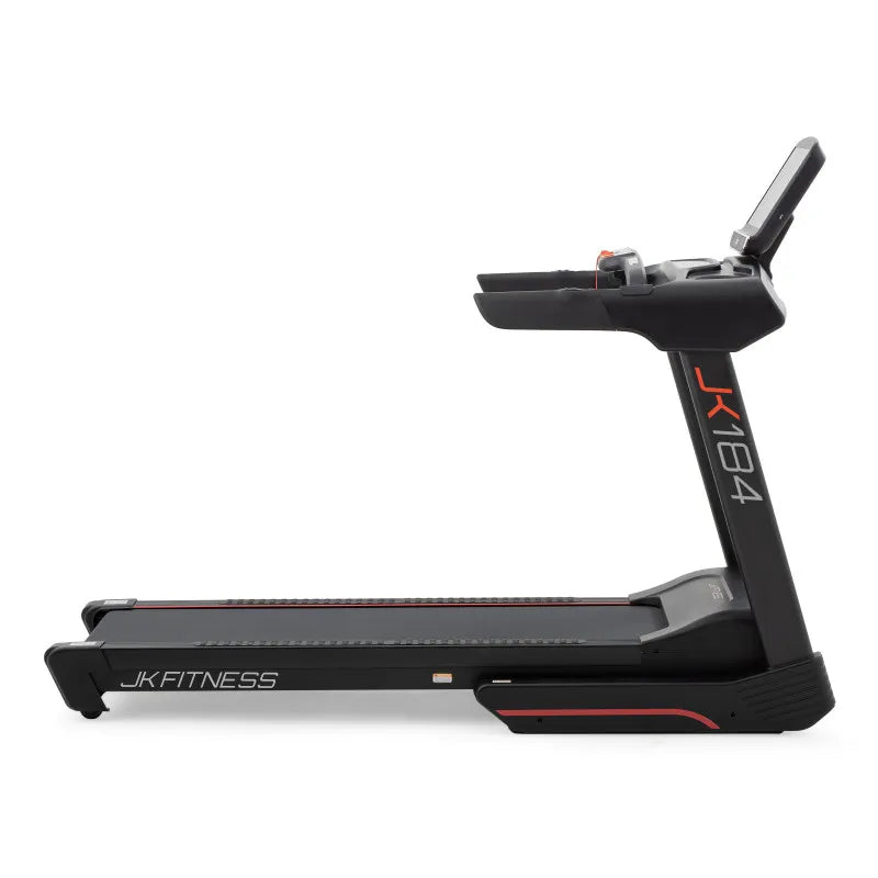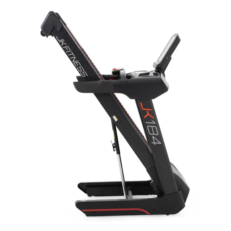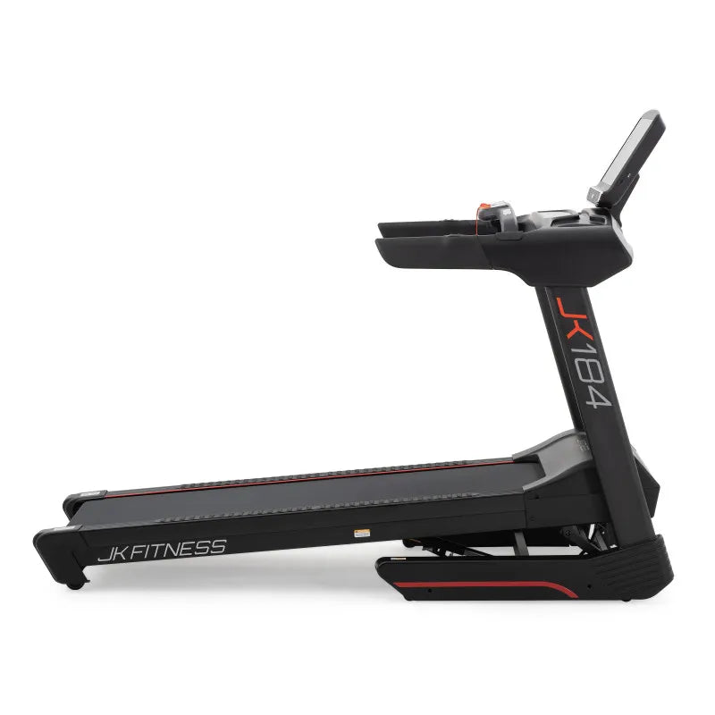 Il nuovo tapis roulant JK 184 entra di diritto ai vertici della gamma home fitness migliorando le caratteristiche tecniche, rispetto alla gamma precedente, il tutto inserito in un contesto più moderno ed elegante.