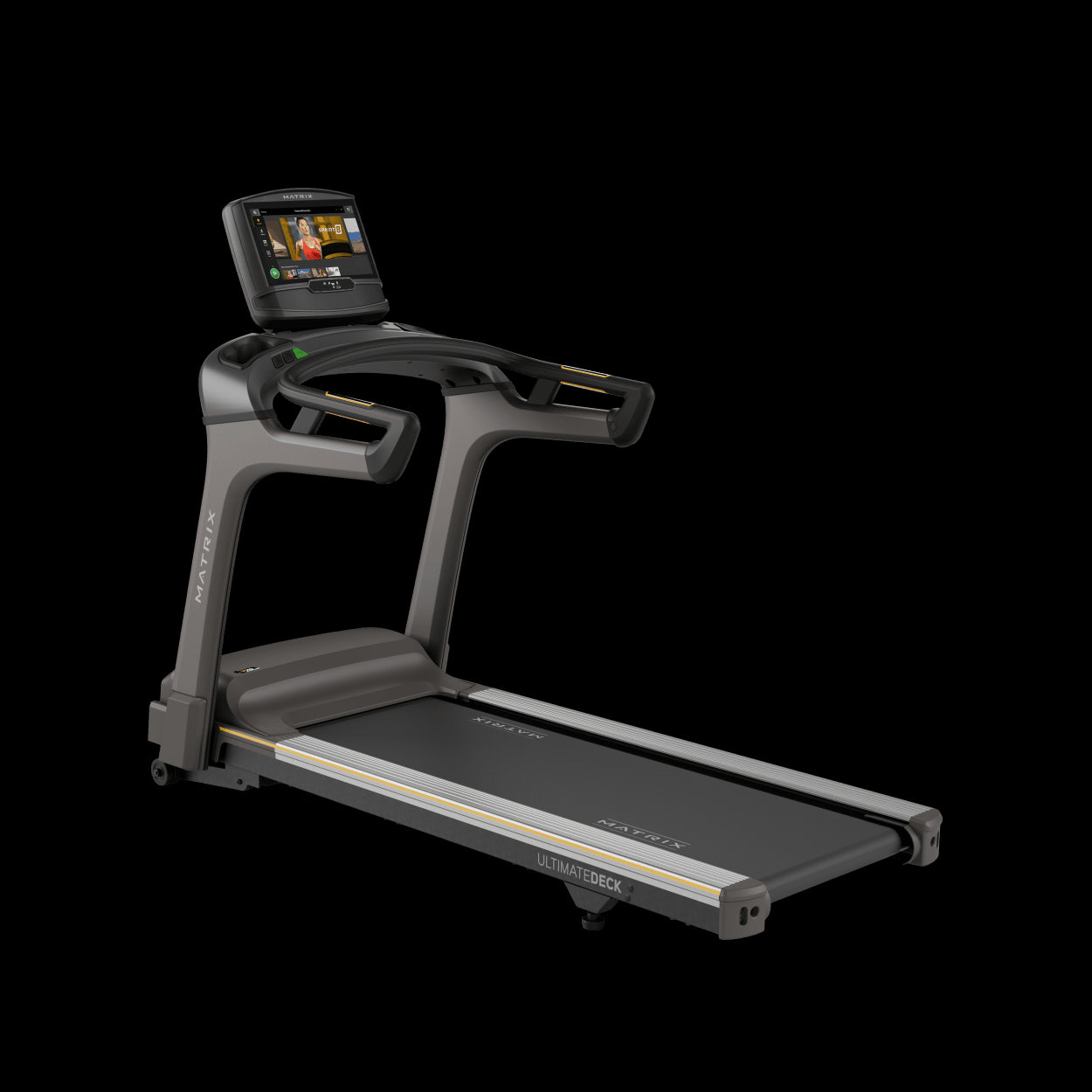 Ampia superficie di corsa con pedana ammortizzata con Ultimate Deck, motore a corrente continua, velocità fino a 20 km/h ed inclinazione elettrica su 15 livelli, display con finestra Touchscreen 16” ad alta definizione telaio con la pedana che può essere sollevata per ridurre lo spazio.