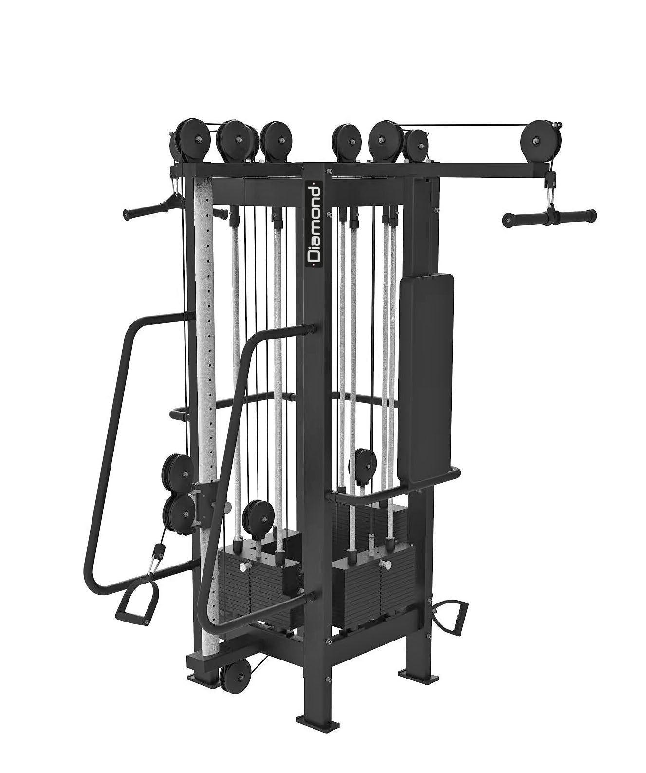La Tower Cable a 4 stazioni della Serie 300 DIAMOND è una struttura multiuso progettata per allenamenti versatili e completi, ideale per palestre professionali, studi di personal training e centri fitness. Grazie alle sue 4 postazioni indipendenti consente a più utenti di allenarsi contemporaneamente, offrendo una vasta gamma di esercizi per ogni gruppo muscolare.