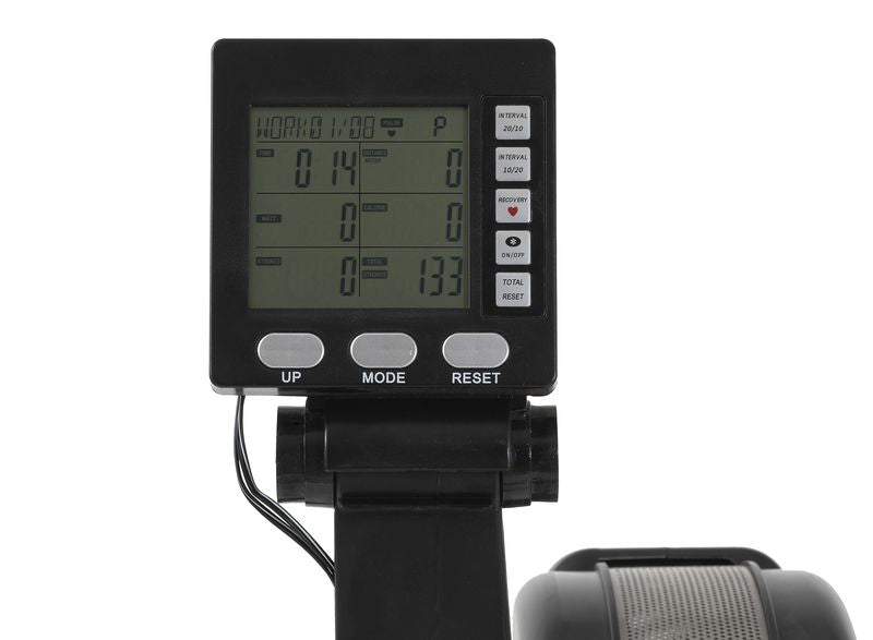 - Visualizzazione Tempo / Distanza / Calorie / SPM / Vogate / Watt / Vogate totali / Frequenza cardiaca