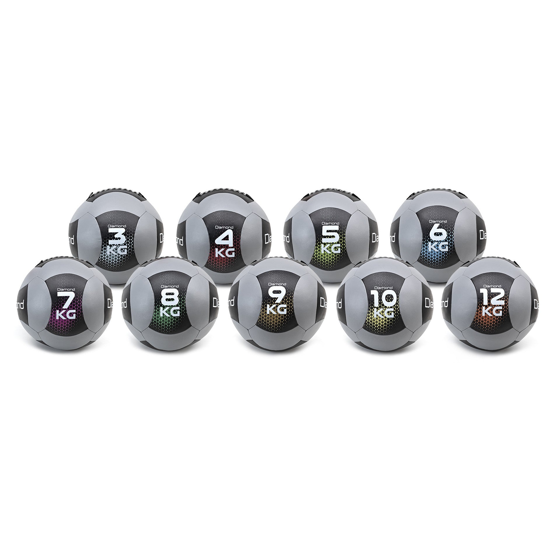 La Wall Ball Challenge Diamond è una palla costruita con una speciale miscela di spugne ad alta densità e rivestita da uno strato di ecopelle che garantisce una presa ottimale ed una lunga durata. L’utilizzo della Wall ball varia in base alle esigenze degli atleti, ma questo tipo di palla è stato realizzato in particolar modo con lo scopo di venire lanciata contro un muro o passata ad un compagno. Viene utilizzata per qualsiasi allenamento di forza e cardio ed il fatto di non essere riempita con l’aria la rende anti-rimbalzo.